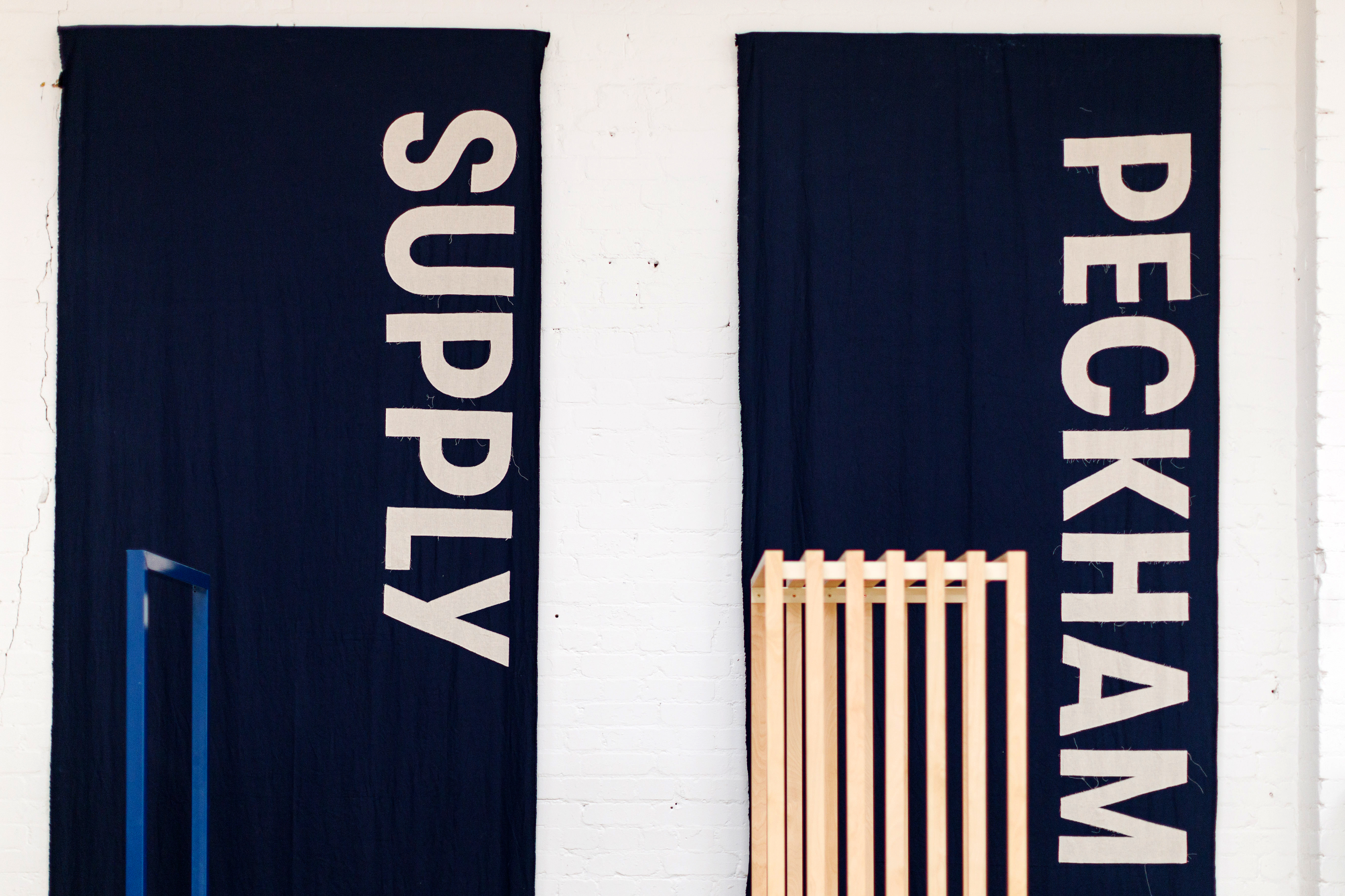 2 large fabric banners designed and made for clothes retailer Peckham Supply.